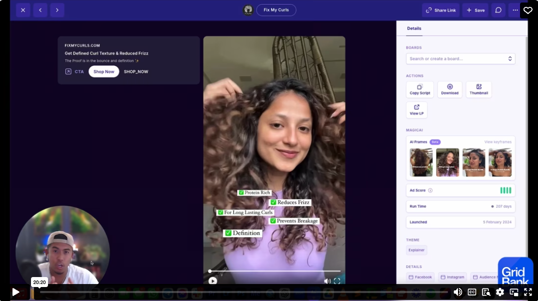 Leverage GridBank to find inspiration for Hooks, B-Roll and Organic Content.
